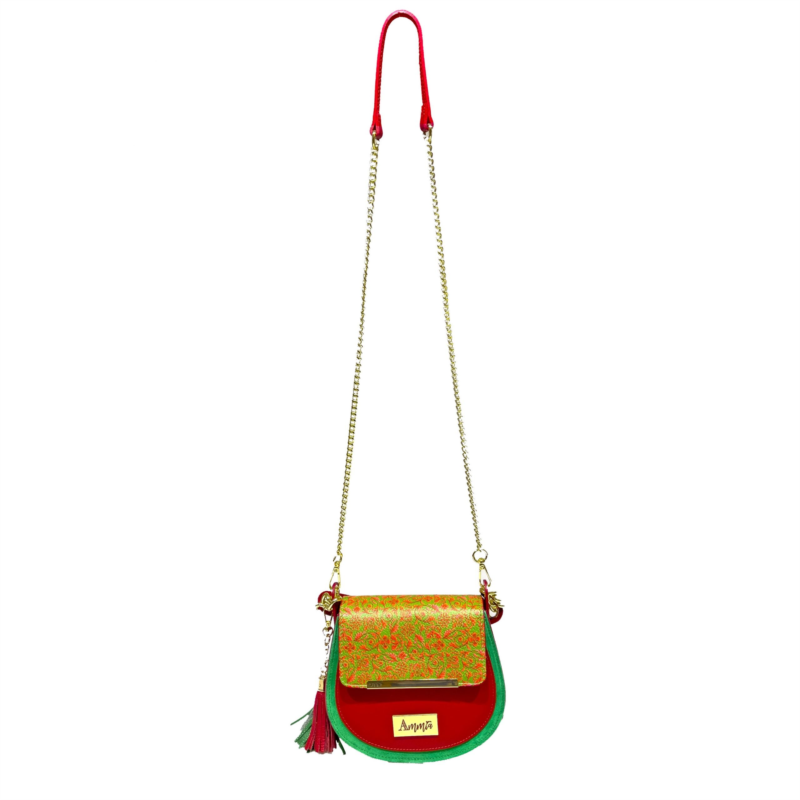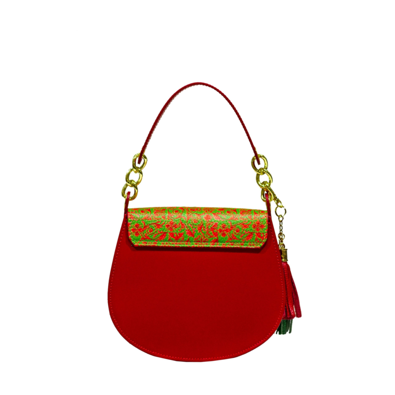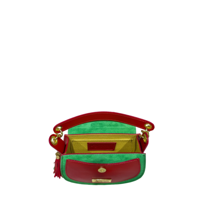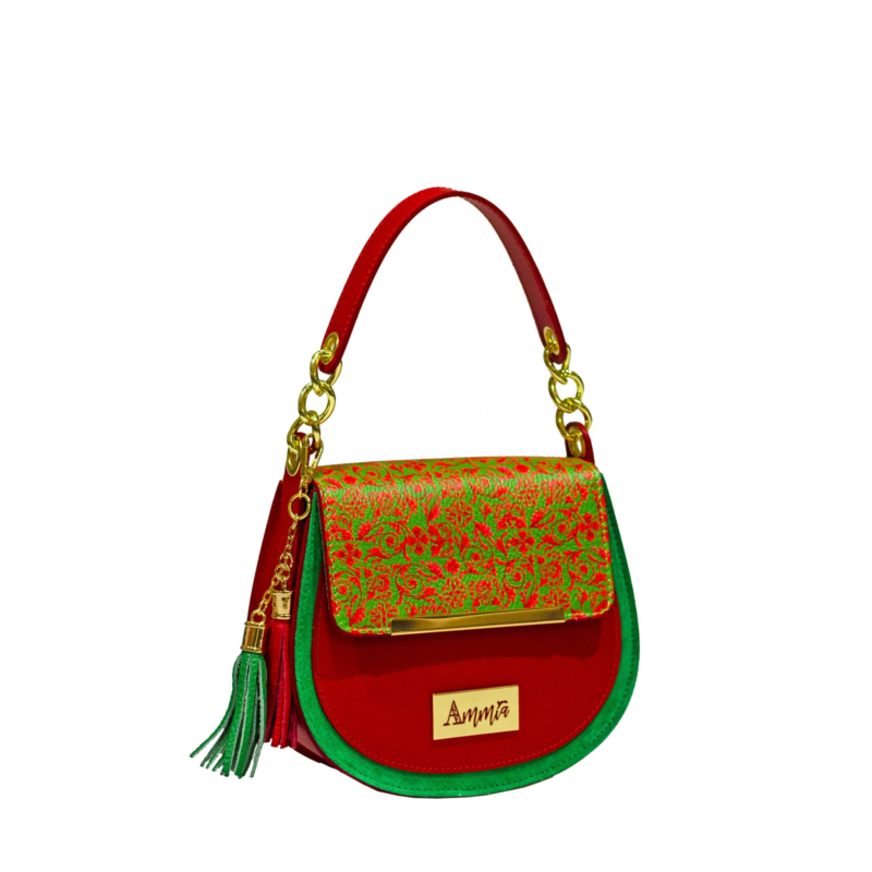 Minibag posh donna ammìa, Minibag posh scaramantica rossa e verde, collezione posh. Minibag Posh “Scaramanzia” con decori scaramantici tipici della tradizione siciliana.