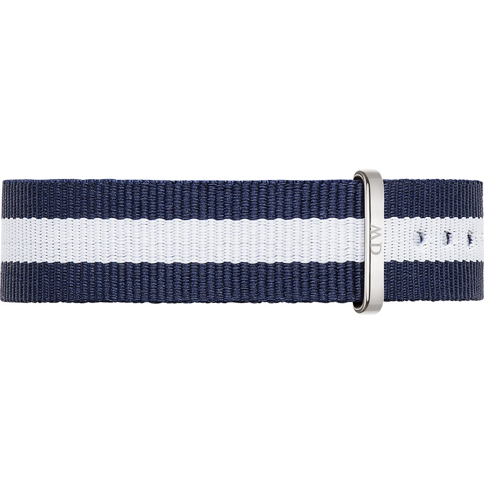 Cinturino per orologio unisex daniel wellington, 1063dw, collezione glasgow , in nylon blu e bianco, fibbia in colore argento, adatto a qualsiasi orologio dw che usa lo strap 17mm, inoltre questo cinturino può essere utilizzato anche in orologi
