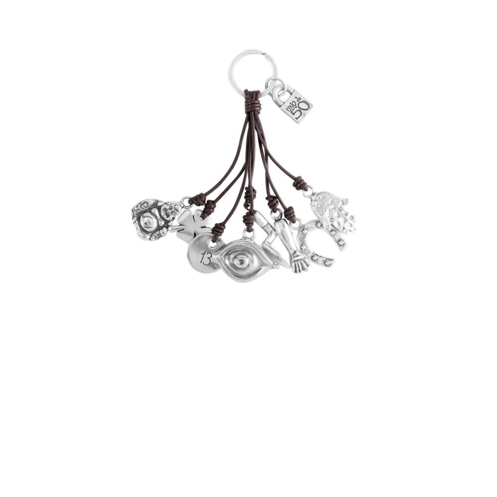 Portachiavi uno de 50 realizzato a mano, Lla0124mtx, collezione i give you… novità, in pelle con fascino e l'Uno de 50 lucchetto, in lega di metallo argentato.