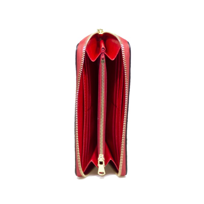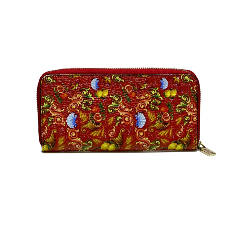 Portafoglio donna ammìa, Portafoglio scaramantico rosso, collezione portafoglio. Portafoglio “Scaramantico”, con motivi scaramantici tipici della tradizione siciliana, come le cornucopie e le conchiglie.