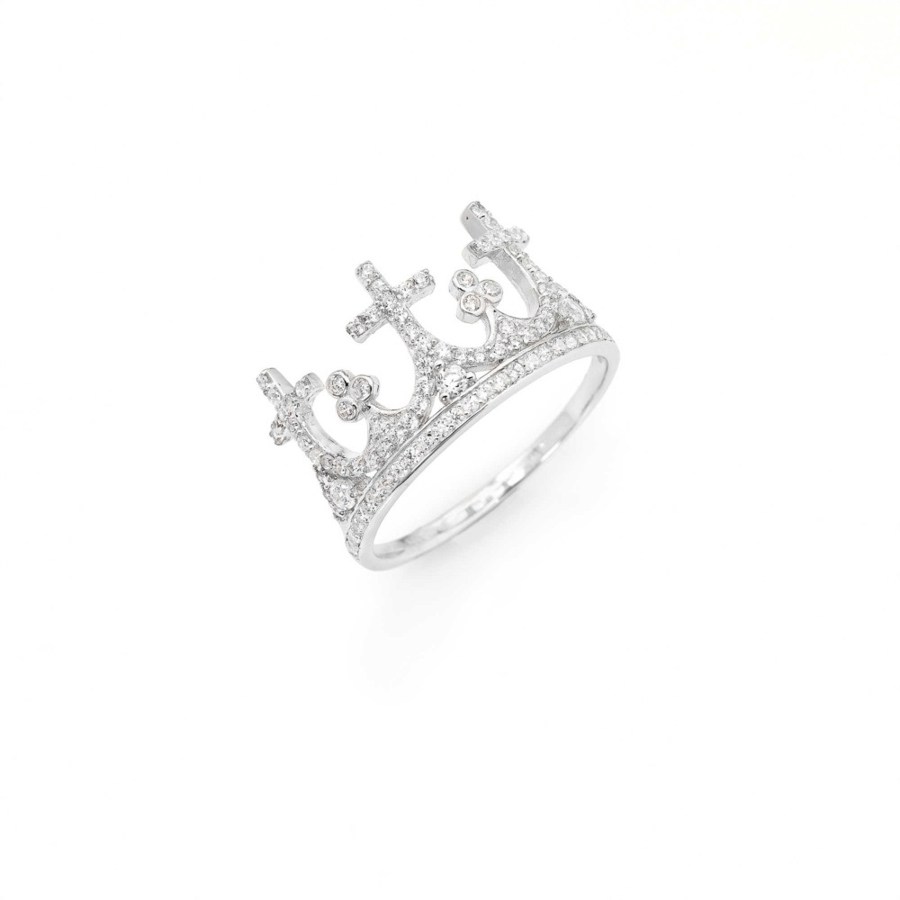 Anello donna amen, Ac3-14, collezione corona, in argento con zirconi bianchi