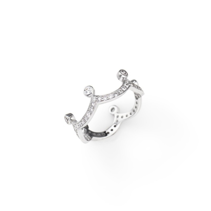 Anello donna amen, rz9-10, collezione corona, ; in argento rodiato con zirconi