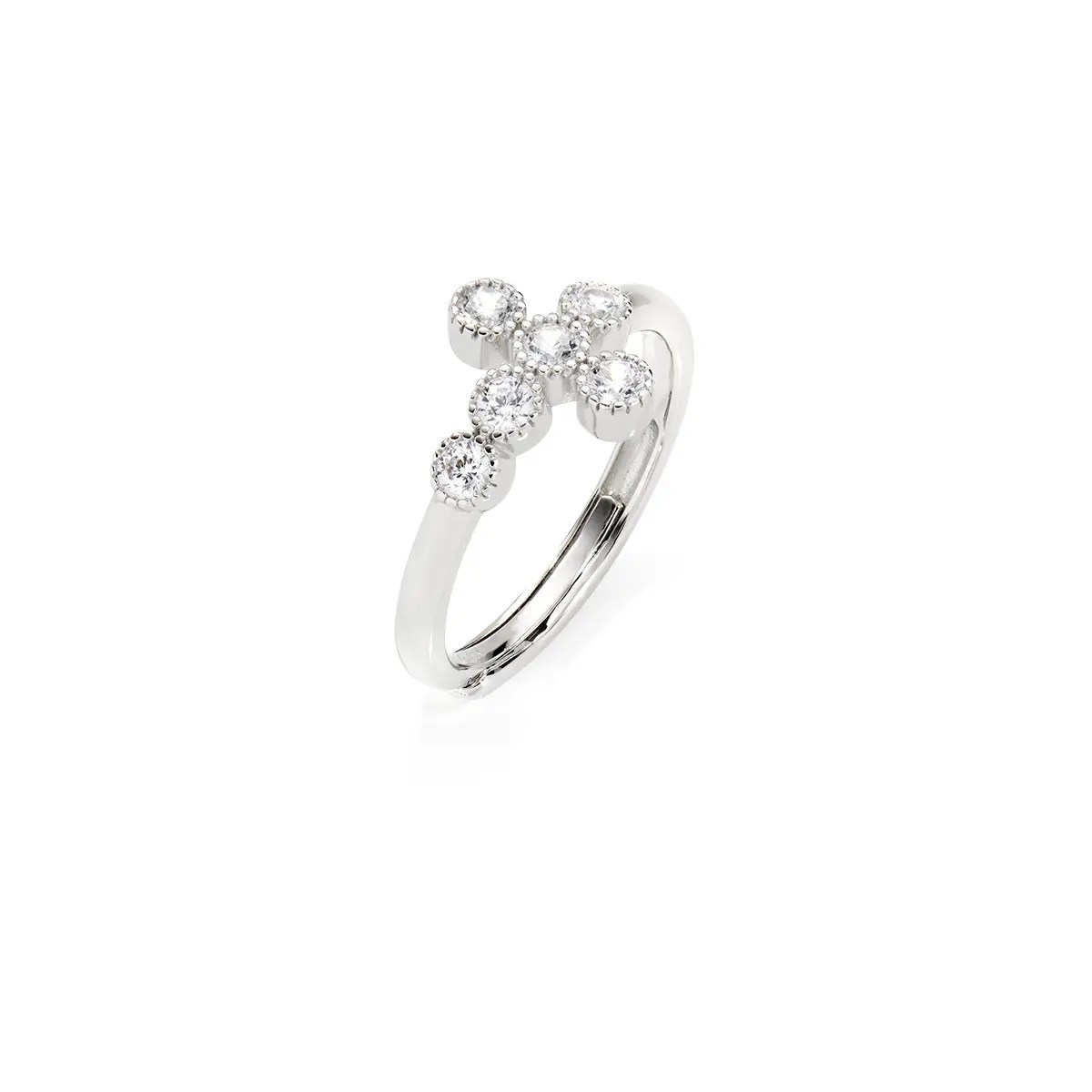 Anello donna amen, ANCRBOBBZ2, collezione croci, in argento 925 con croce di zirconi bianchi su castone tondo, misura regolabile dalla 10 alla 14