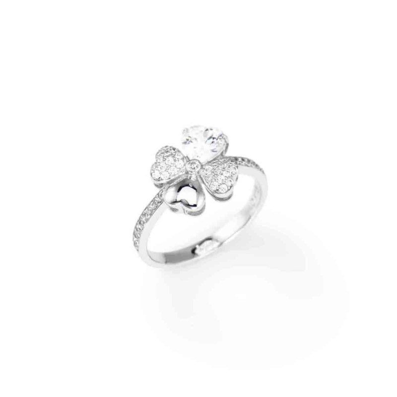 Anello donna amen, RQUBB-10, collezione quadricuore, in argento 925 rodiato con zirconi, misura 10