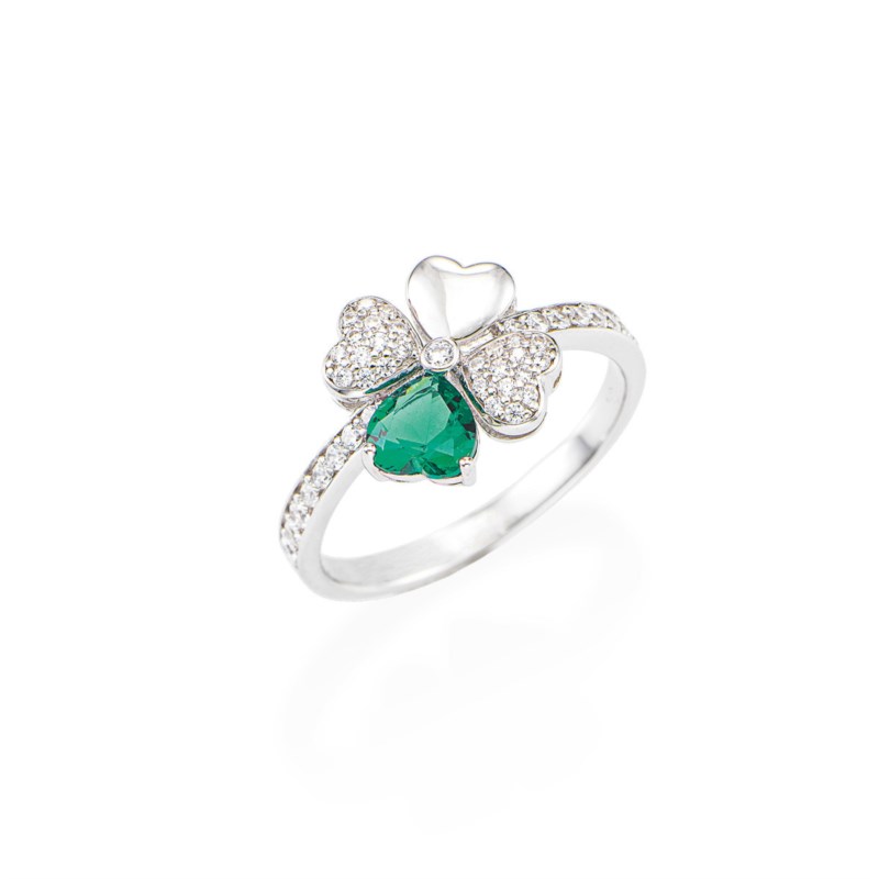 Anello donna amen, rqubv-12, collezione quadricuore, quadrifoglio in argento 925 con zirconi bianchi e verdi, taglia 12