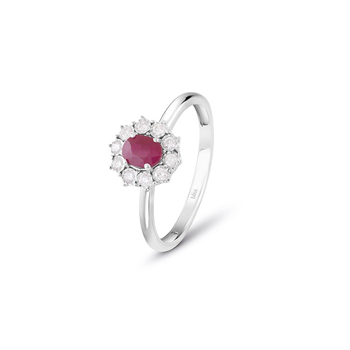 Anello donna bliss, 20095702, collezione charleston, in oro bianco 18kt con diamanti 0.15ct colore gh e rubini 0.35ct