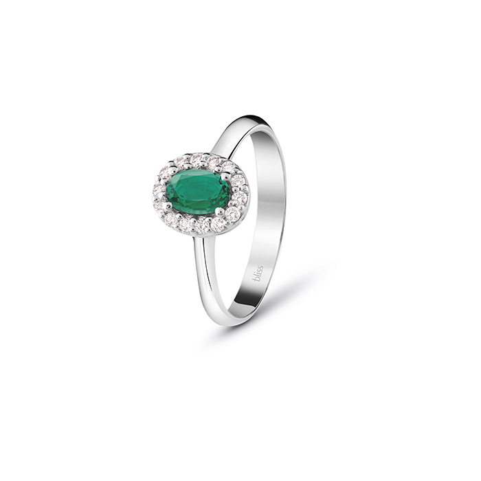 Anello donna bliss, 20095843, collezione dream, in oro bianco 18kt con diamanti 0, 14ct e smeraldo 0, 38ct