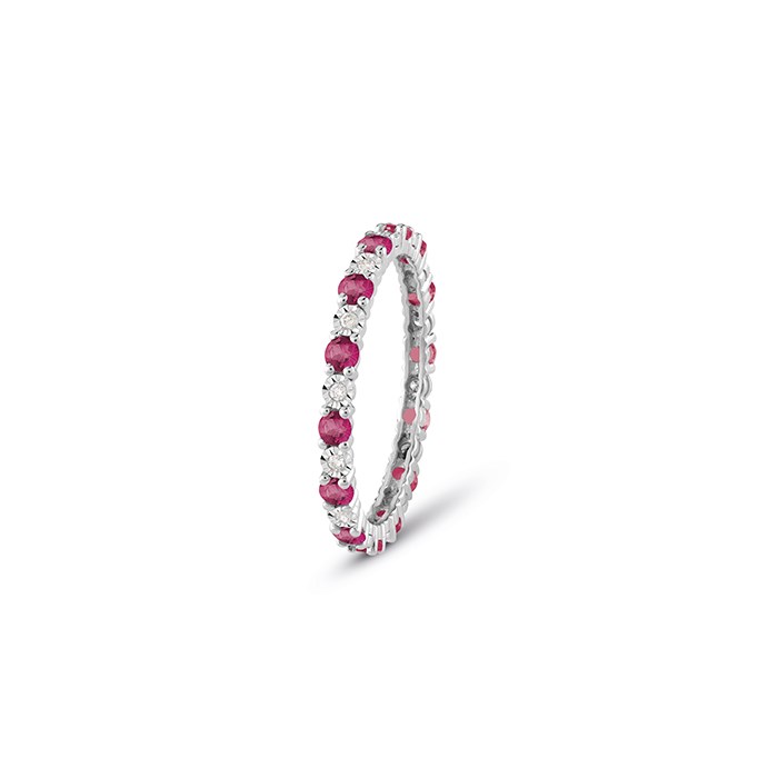 Anello donna bliss, 20095717, collezione rugiada colors, in oro bianco 18kt con diamanti 0.06ct e rubini 0.65ct