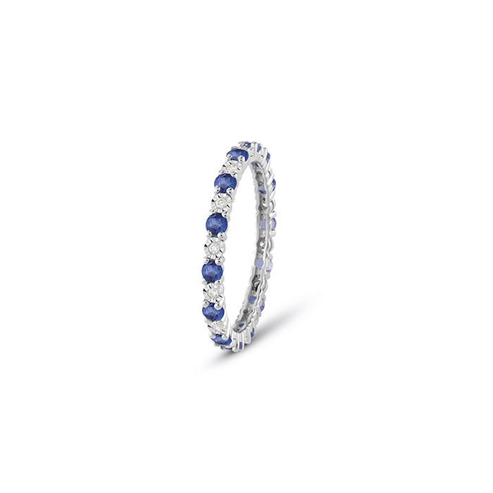 Anello donna bliss, 20095714, collezione rugiada colors, in oro bianco 18kt con diamanti 0.06ct colore gh e zaffiri 0.65ct