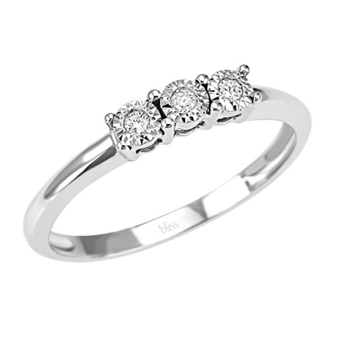 Anello donna bliss, 20069897, collezione splendori, in oro bianco e 3 diamanti ct.