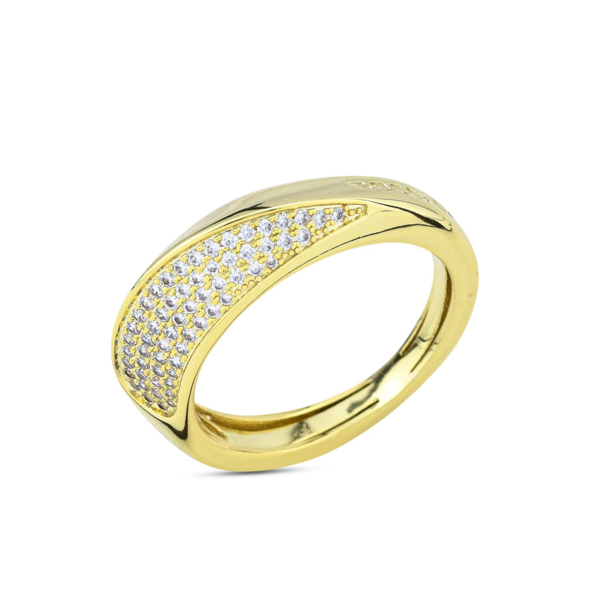 Anello donna boccadamo, KAN020D, collezione caleida, in bronzo placcato oro giallo e zirconi, misura regolabile da 13 a 19