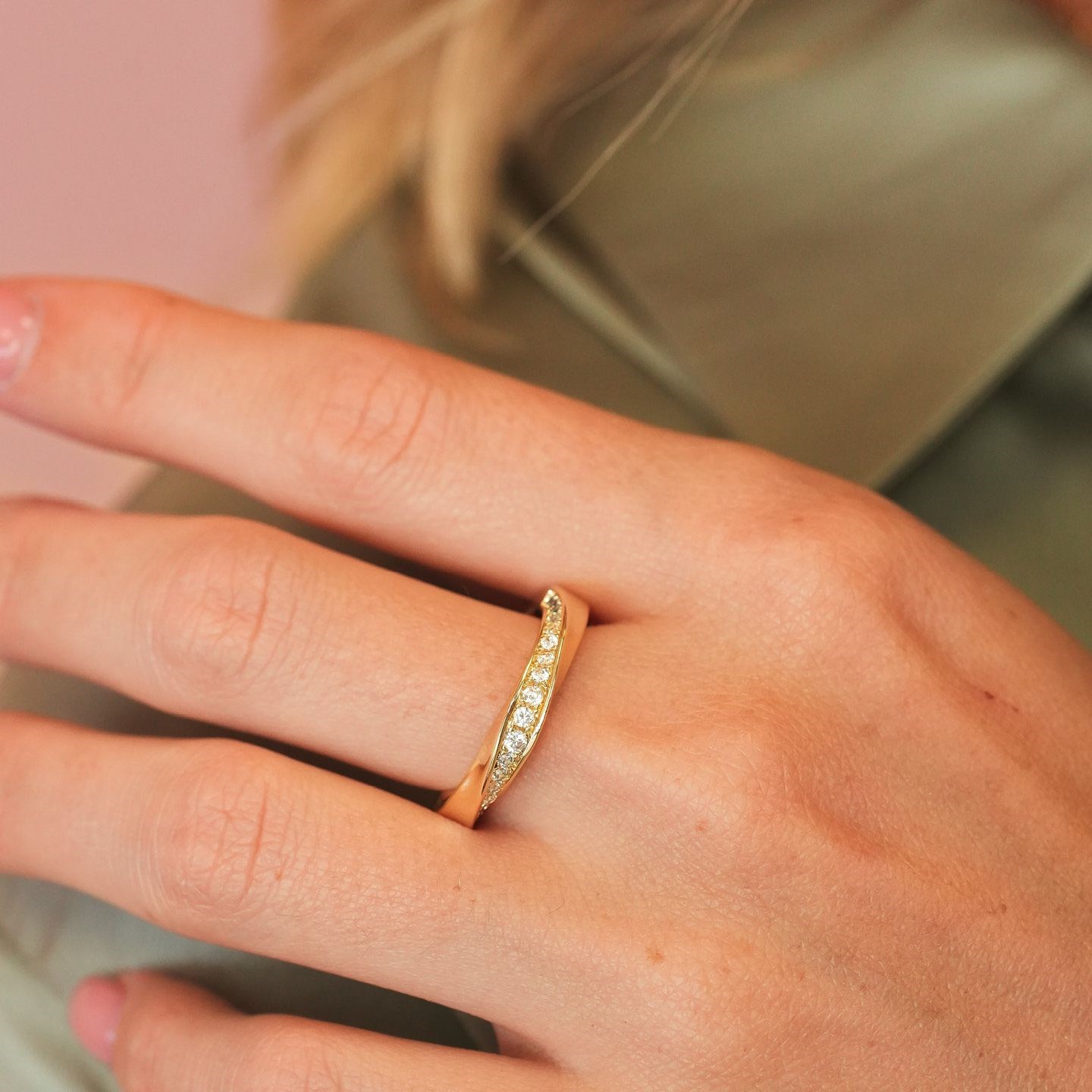 Anello donna boccadamo, KAN022D, collezione caleida, in bronzo placcato oro giallo modello torchon con zirconi incastonati, misura regolabile dalla 13 alla 19