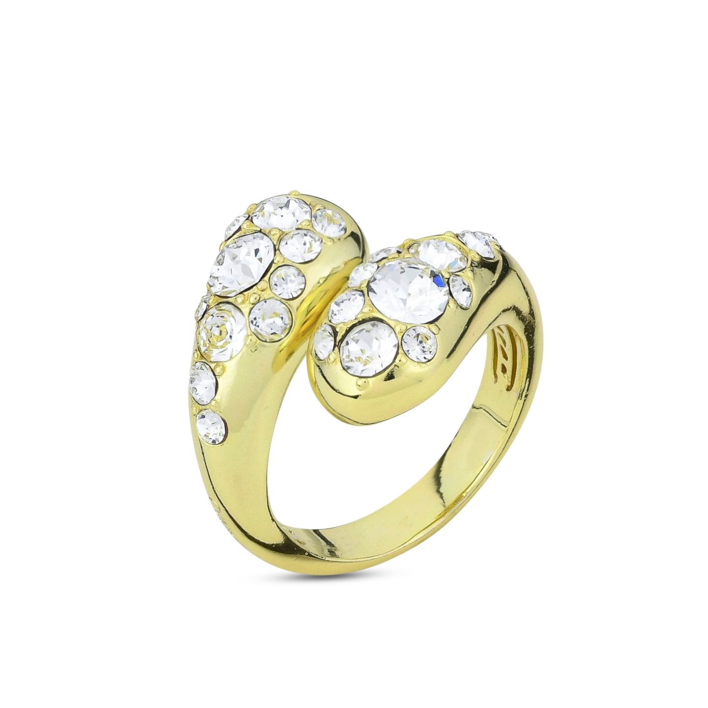 Anello donna boccadamo, XAN215D, collezione harem, in bronzo placcato oro giallo, contrarié con cristalli.
