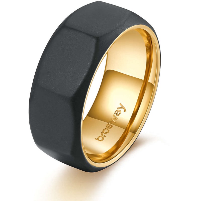Anello uomo brosway, Bdh32c, collezione doha, in acciaio nero/acciaio dorato, misura 23