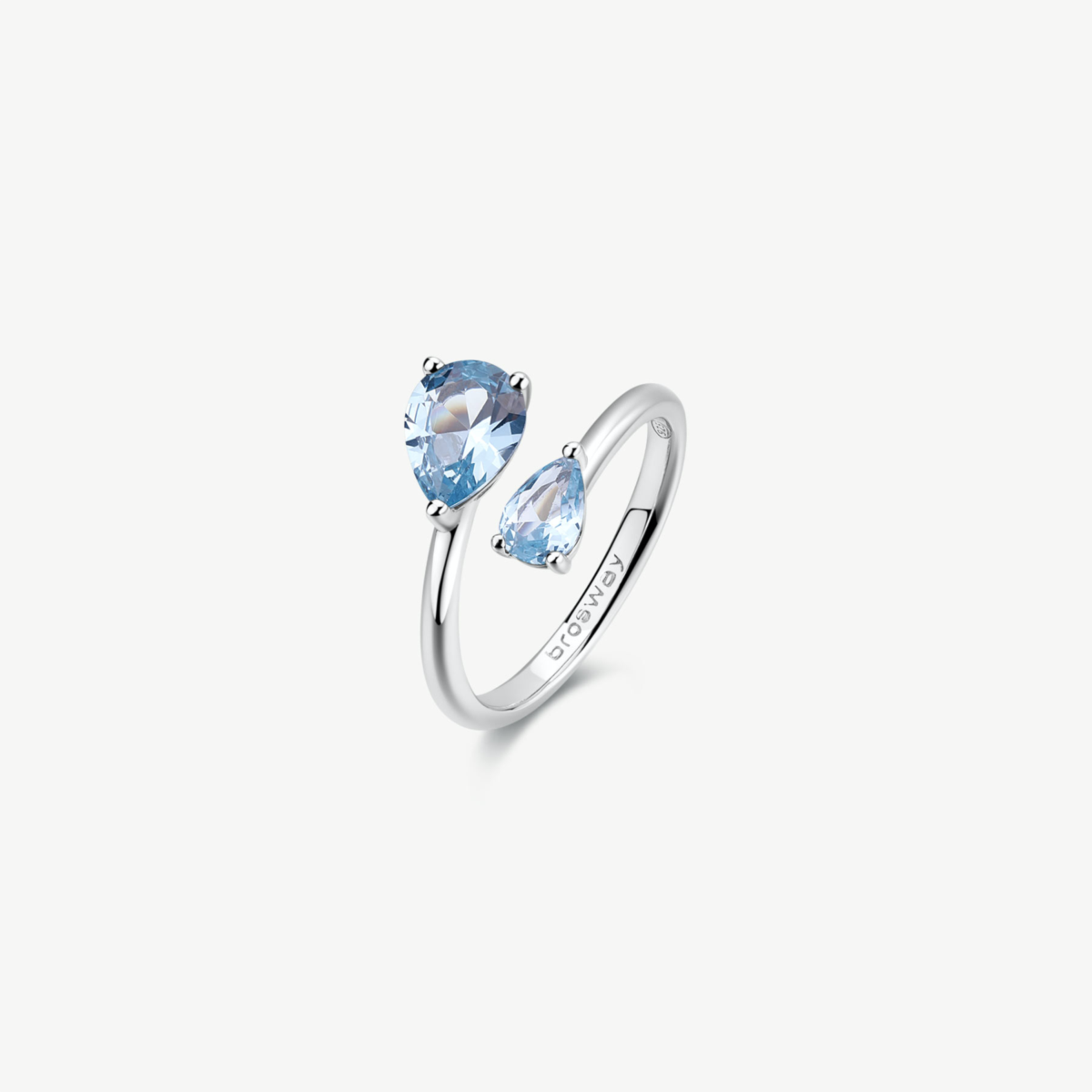 Anello donna brosway, FCL113C, collezione fancy, in argento rodiato 925‰ con pear cubic zirconia colore light sapphire. misura 14.