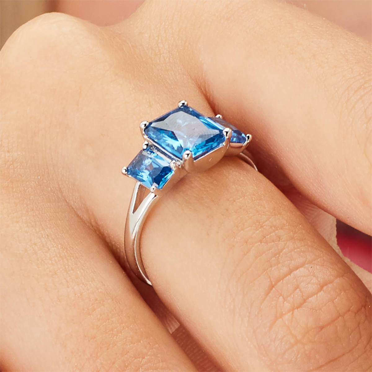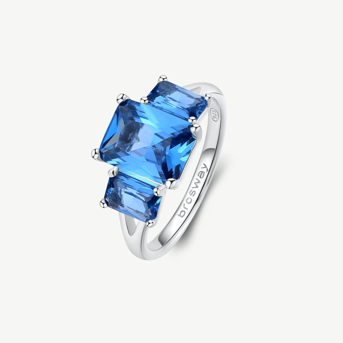 Anello donna brosway, FFB75D, collezione fancy, in argento rodiato 925‰ con baguette cubic zirconia colore sapphire. misura 16