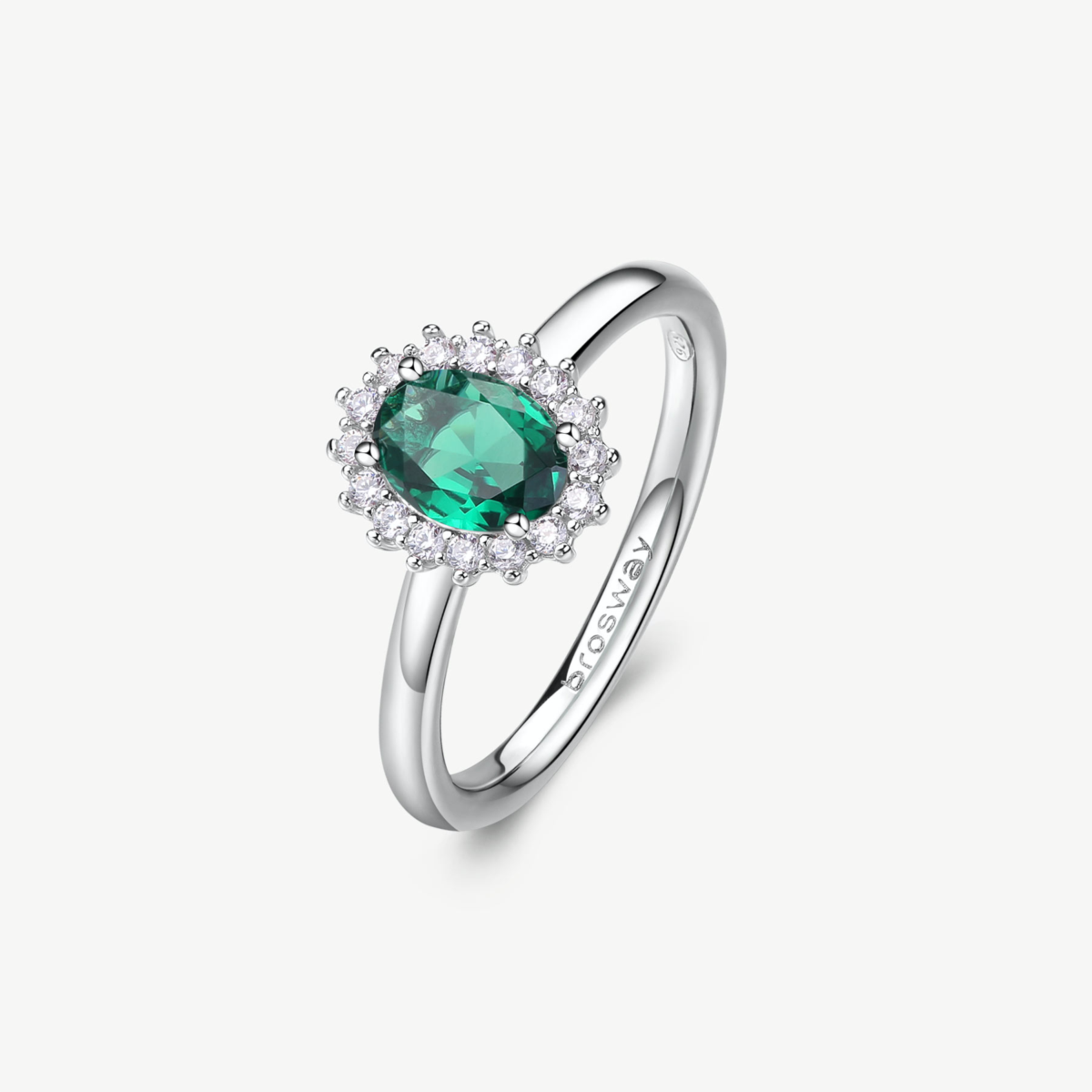 Anello donna brosway, FLG71A, collezione fancy, in argento rodiato 925‰ con oval cubic zirconia chiari e colore emerald