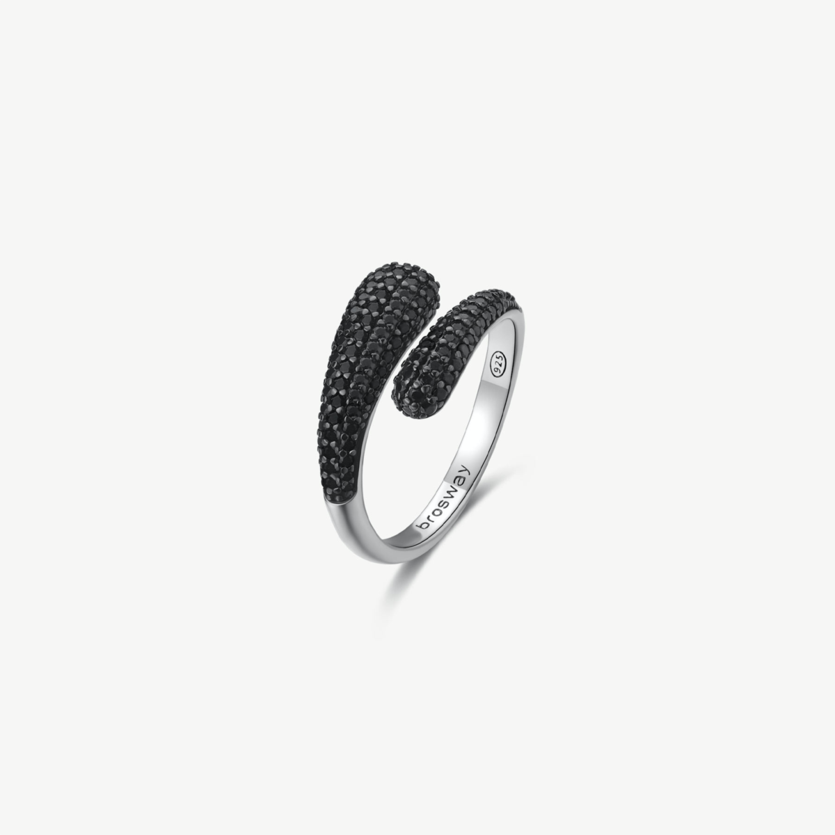 Anello donna brosway, FMB124C, collezione fancy, in argento rodiato 925‰ con galvanica colore rutenio e cubic zirconia neri. misura 14.