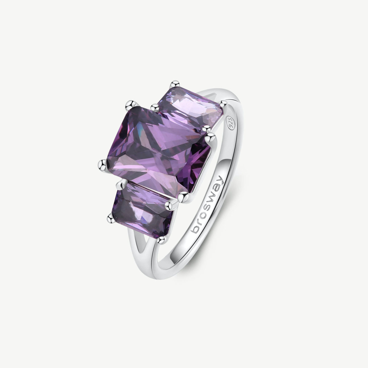 Anello donna brosway, FMP80C, collezione fancy, in argento rodiato 925‰ con baguette cubic zirconia colore amethyst. misura 14