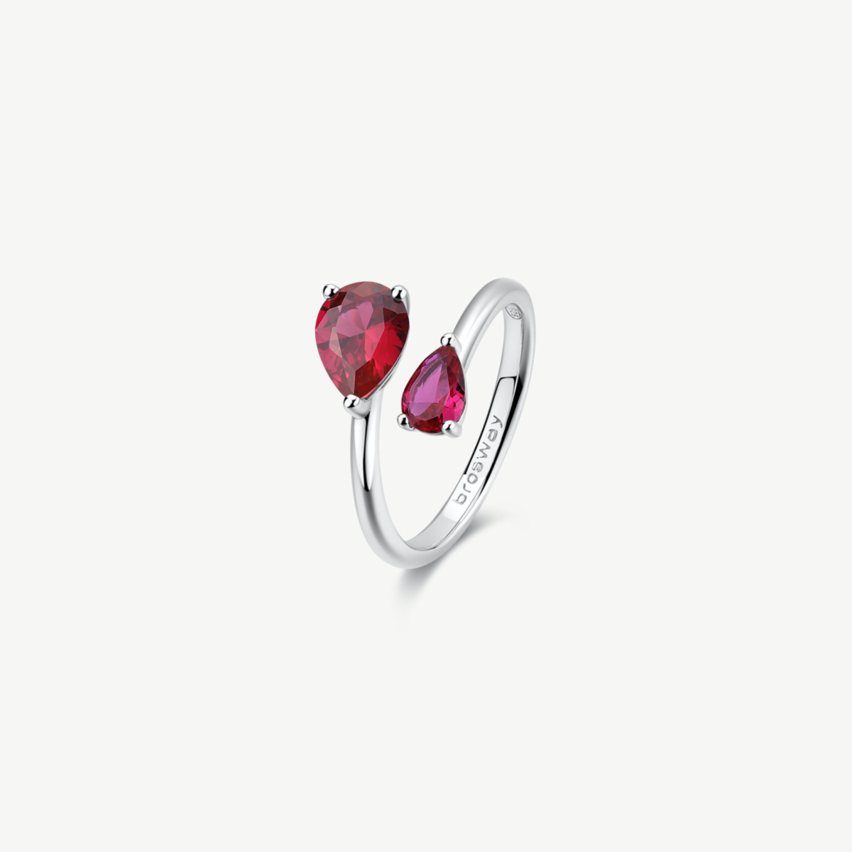 Anello donna brosway, FPR115B, collezione fancy, in argento rodiato 925‰ con pear cubic zirconia colore ruby. misura 12.