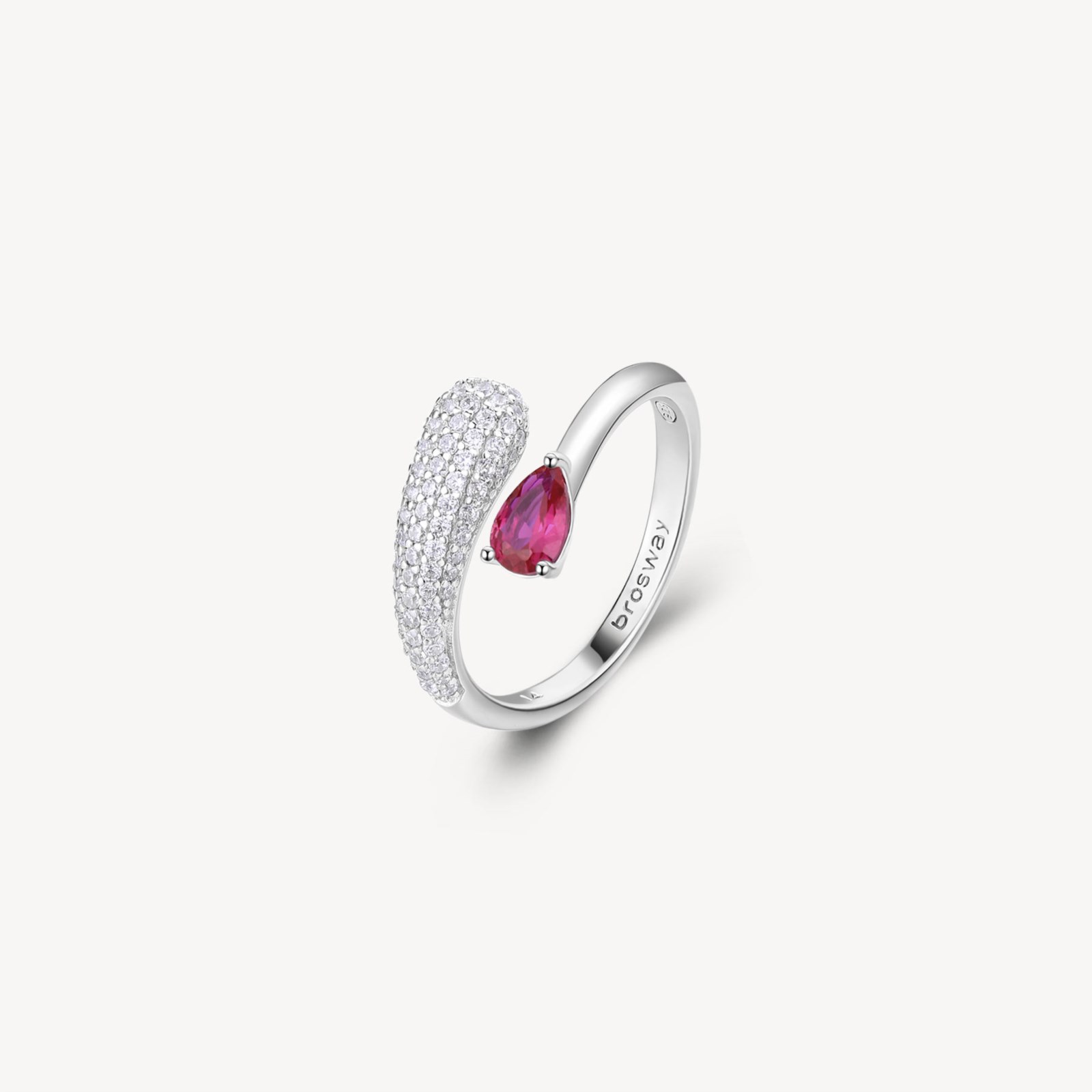 Anello donna brosway, FPR127A, collezione fancy, in argento rodiato 925‰ con cubic zirconia chiari e colore ruby. misura 10