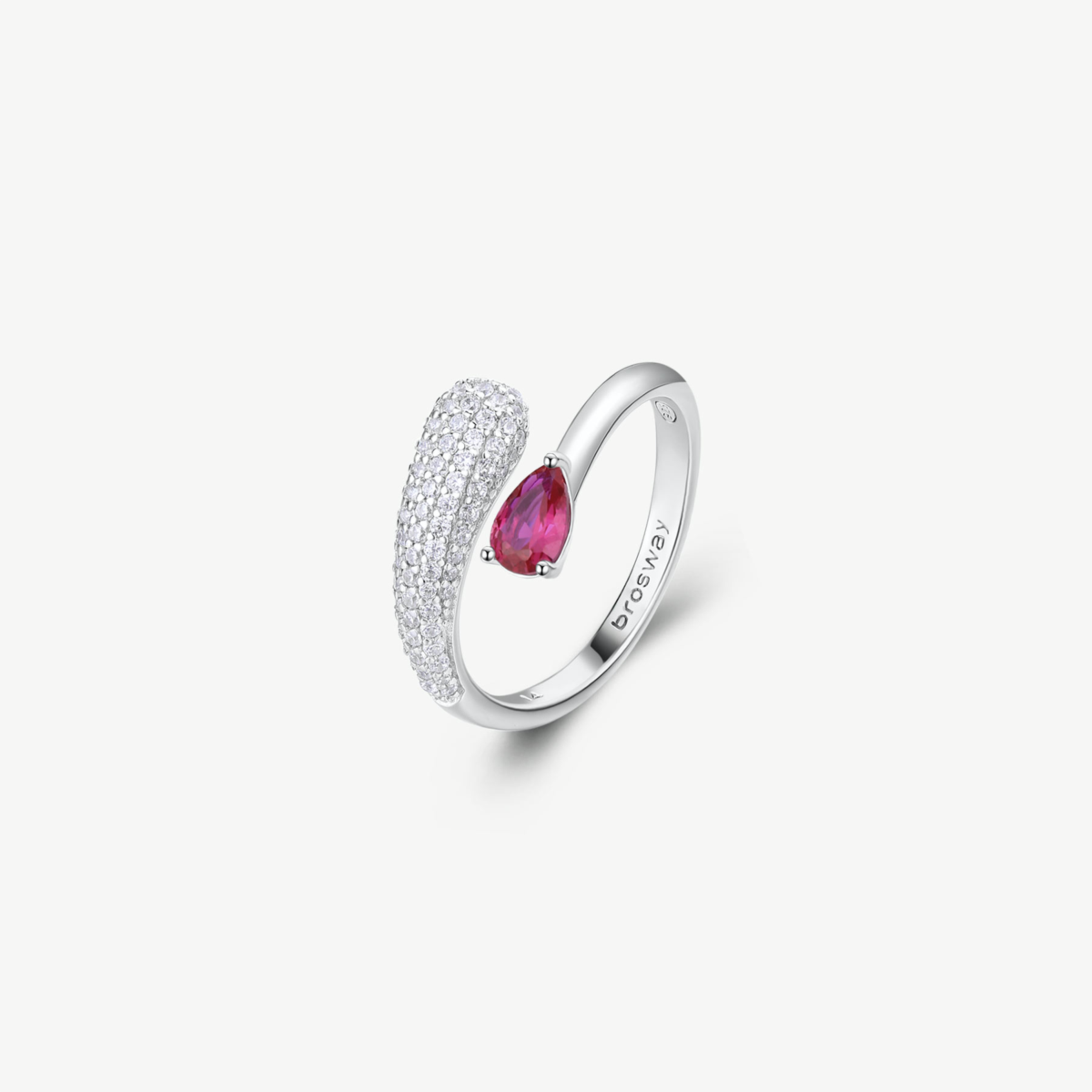 Anello donna brosway, FPR127B, collezione fancy, contrarié in argento rodiato 925‰ con cubic zirconia chiari e colore ruby. misura 12.