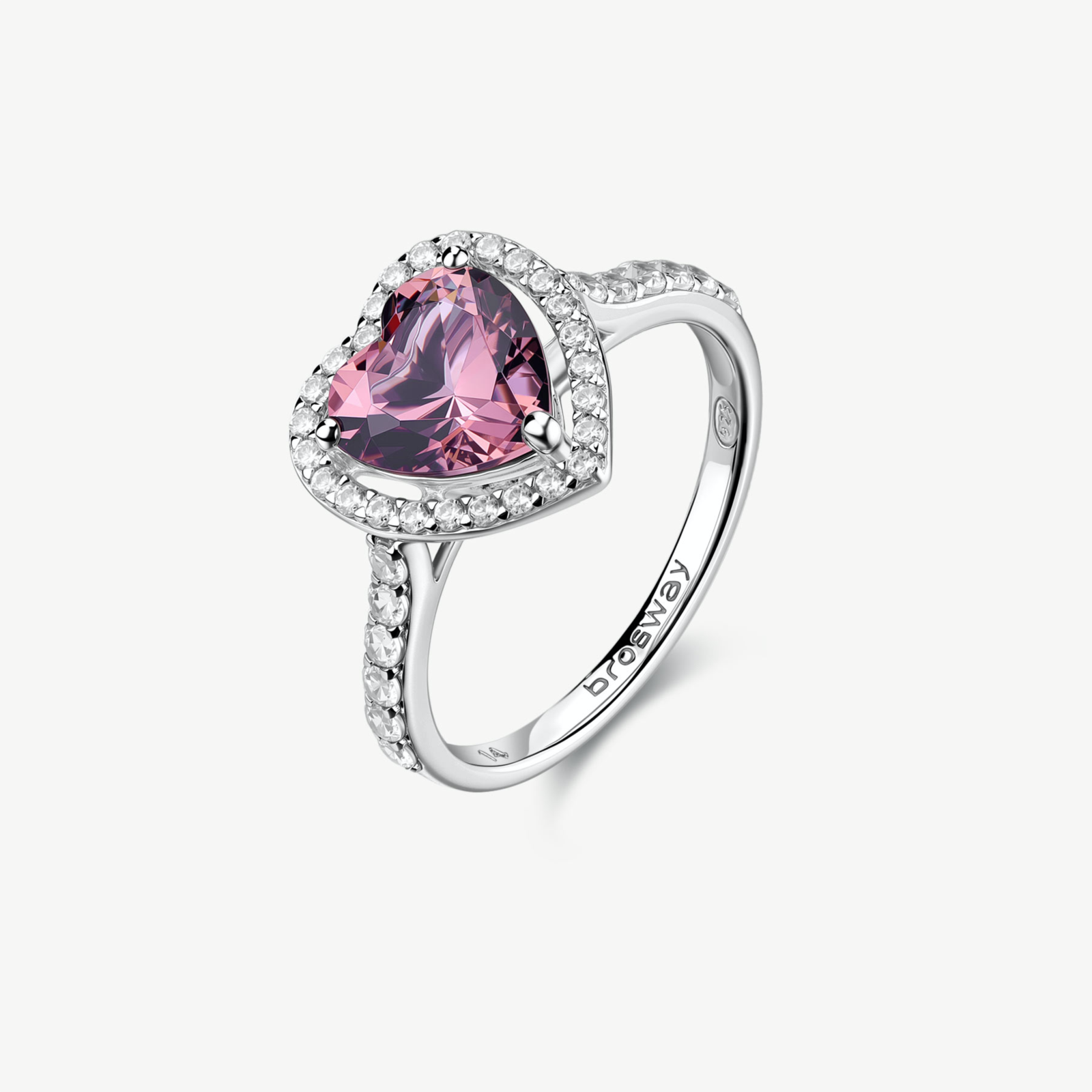 Anello donna brosway, FTP25D, collezione fancy, in argento rodiato 925‰ con cuore, cubic zirconia chiari e cubic zirconia colore vintage rose.