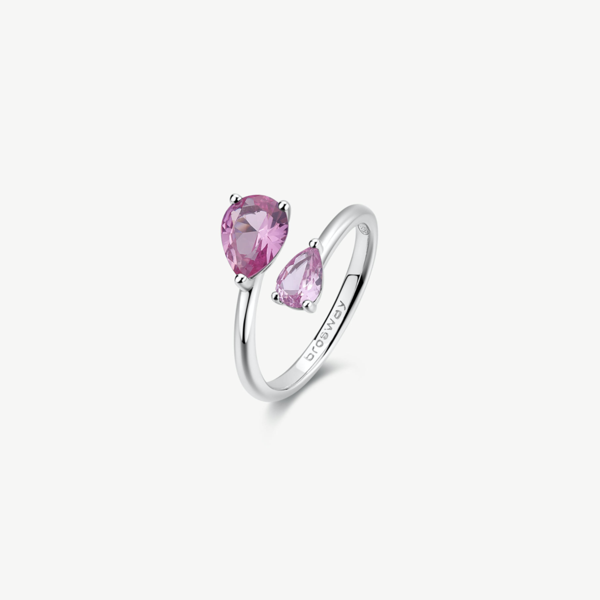 Anello donna brosway, FVP114C, collezione fancy, in argento rodiato 925‰ con pear cubic zirconia colore light ruby. misura 14.
