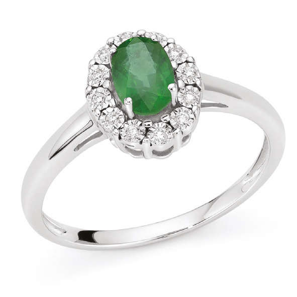 Anello donna donna oro, LAE10093.006, collezione iride, in oro bianco 18kt con diamanti 0.06ct e smeraldo 0.45ct