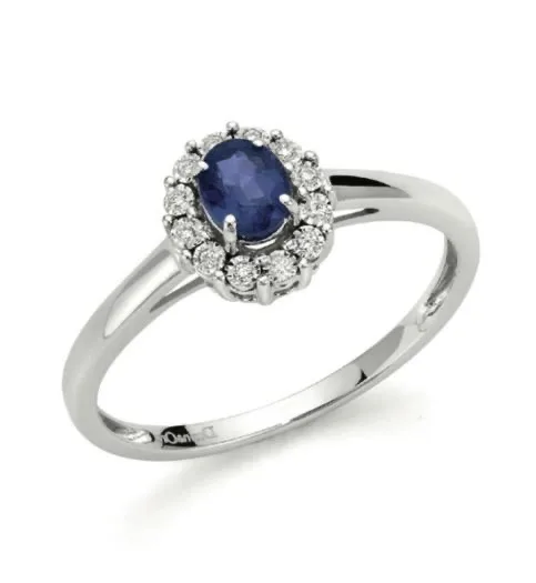 Anello donna donna oro, LAZ10093.006, collezione iride, in oro bianco 18kt con diamanti 0.06ct e zaffiro 0.50ct