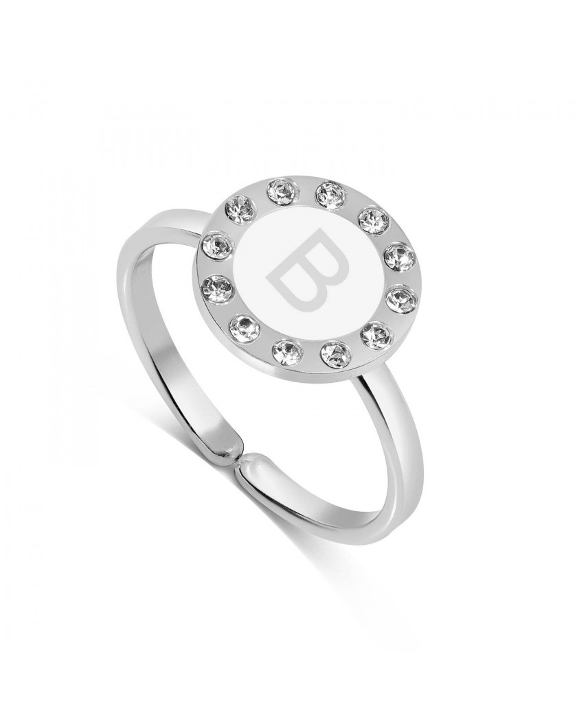 Anello dvccio donna, Zxamicro, collezione autunno inverno, in argento 925 con zirconi e lettera B, misura regolabile