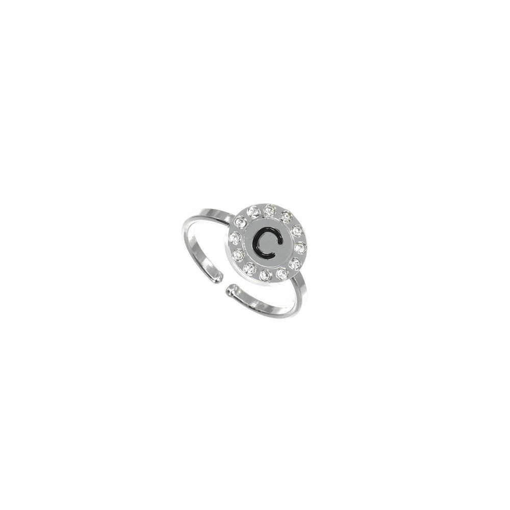 Anello donna dvccio, ZXALUX-W-C, collezione grace, in argento 925 placcato oro bianco e lettera C, misura regoabile