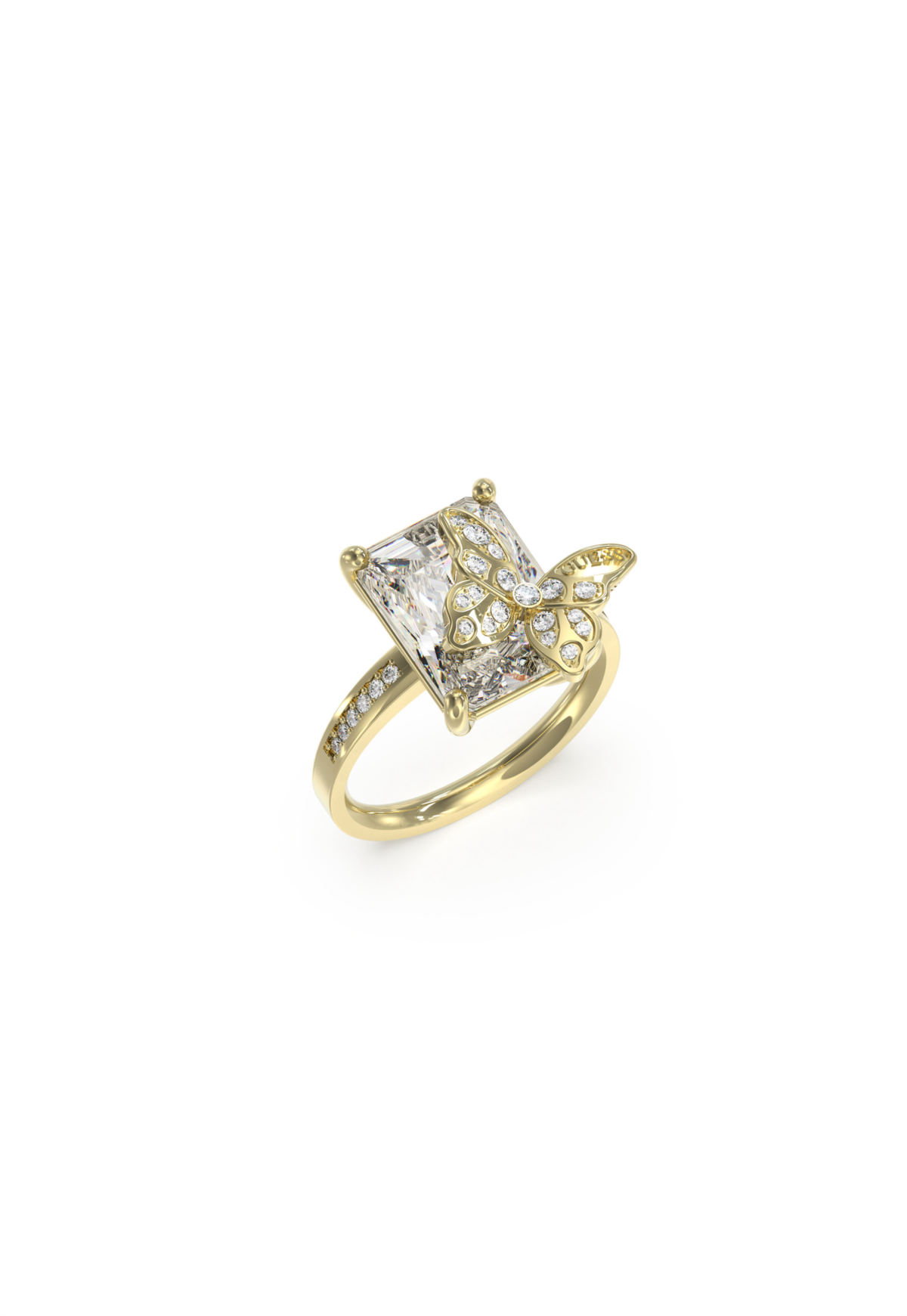Anello donna guess, UBR04100YG, collezione chrysalis, in acciaio dorato e cristalli