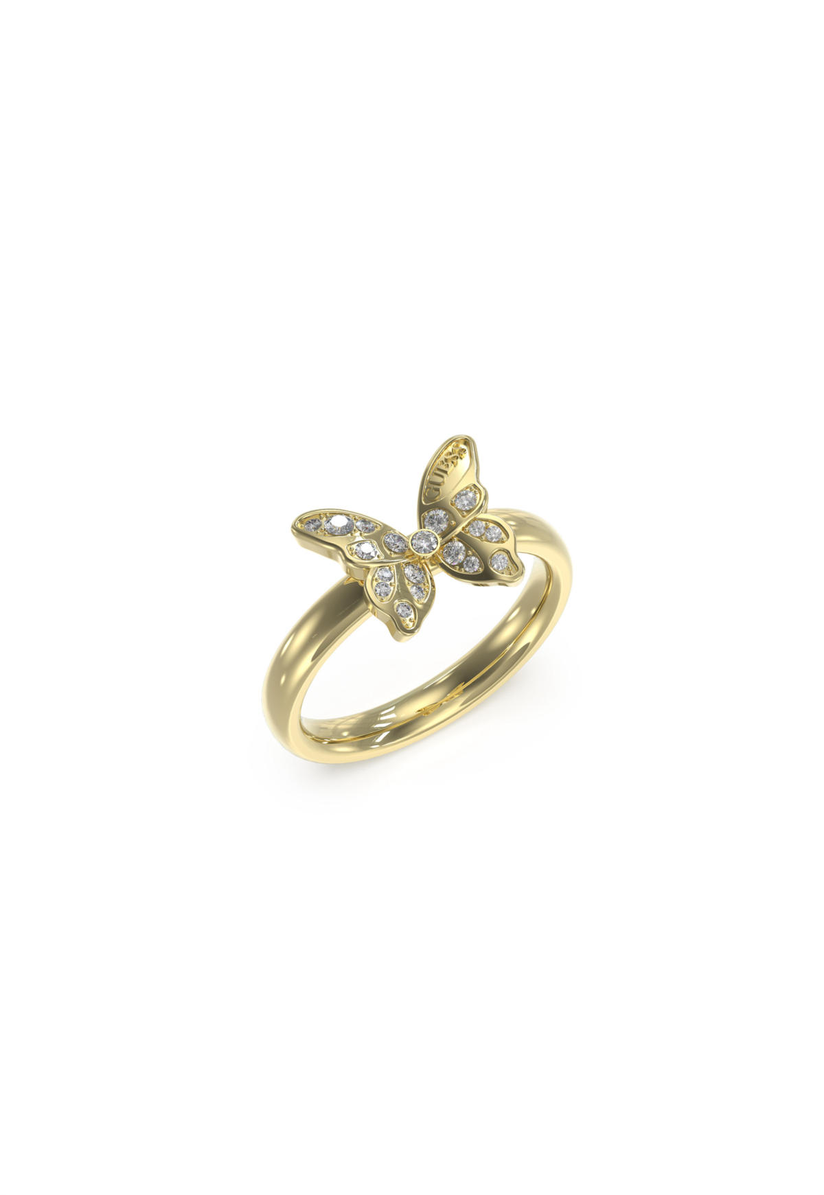 Anello donna guess, UBR04109YG, collezione chrysalis, in acciaio dorato e cristalli