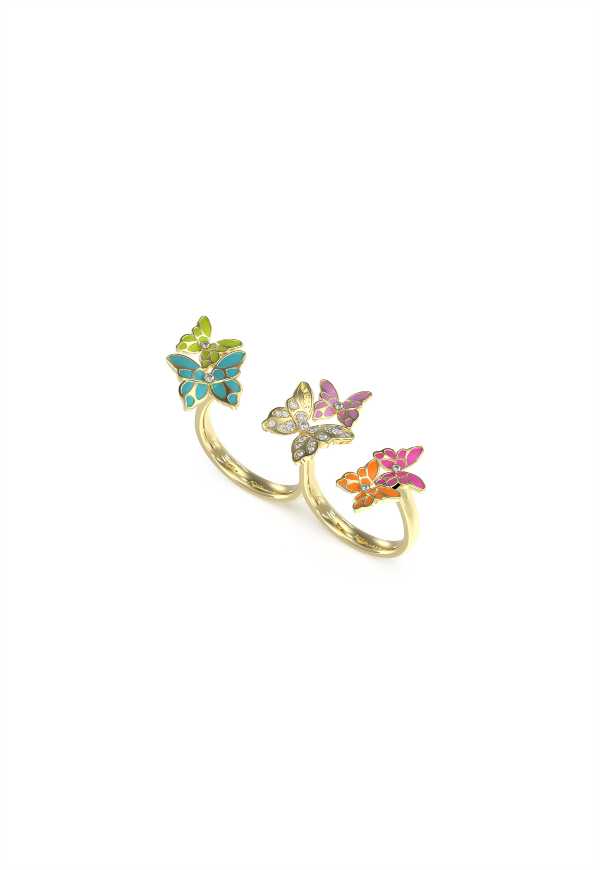 Anello donna guess, UBR0494YGMC, collezione chrysalis, in acciaio dorato con cristalli e smalto