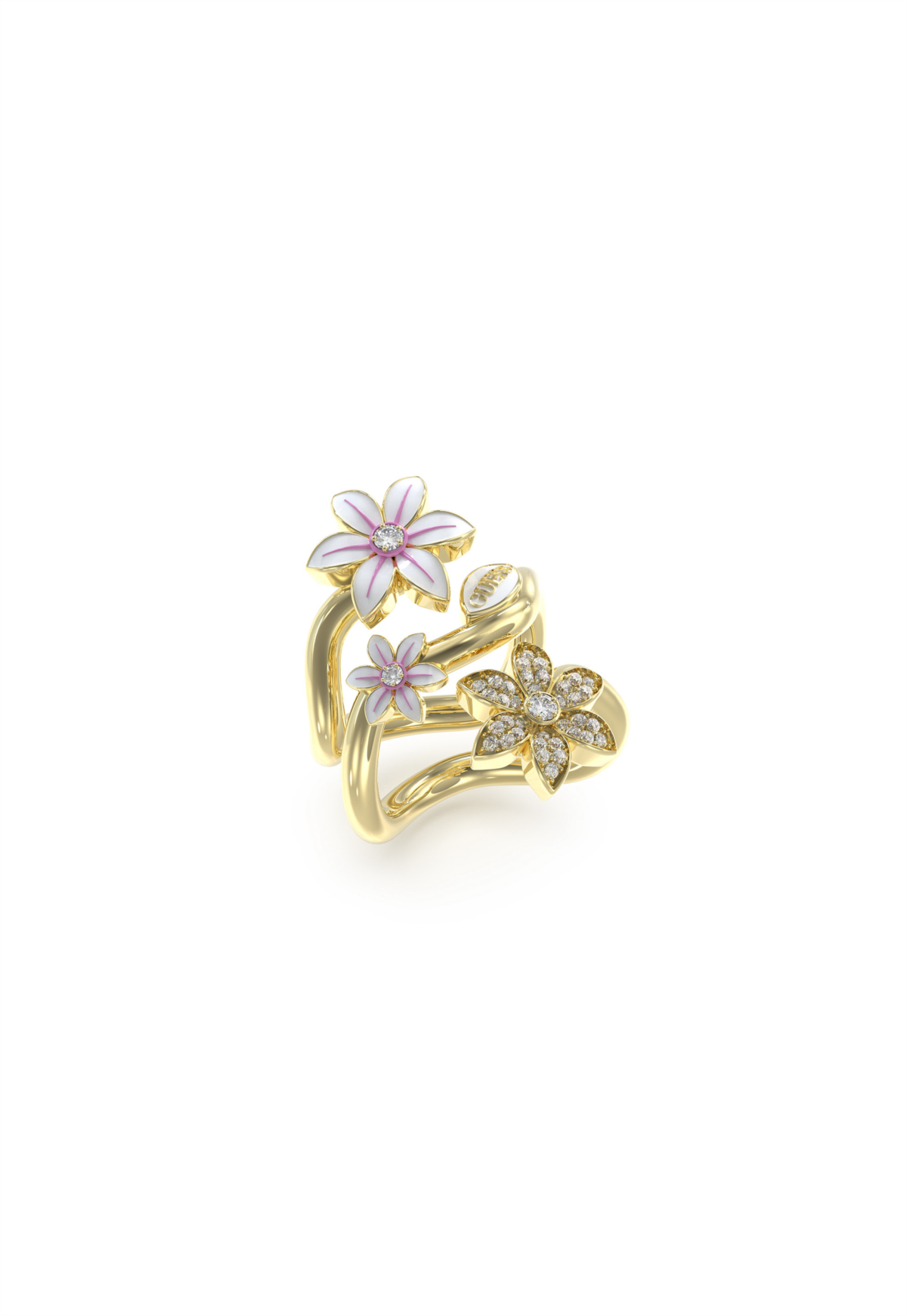 Anello donna guess, UBR04142YG, collezione white lotus, in acciaio dorato con cristalli e smalto