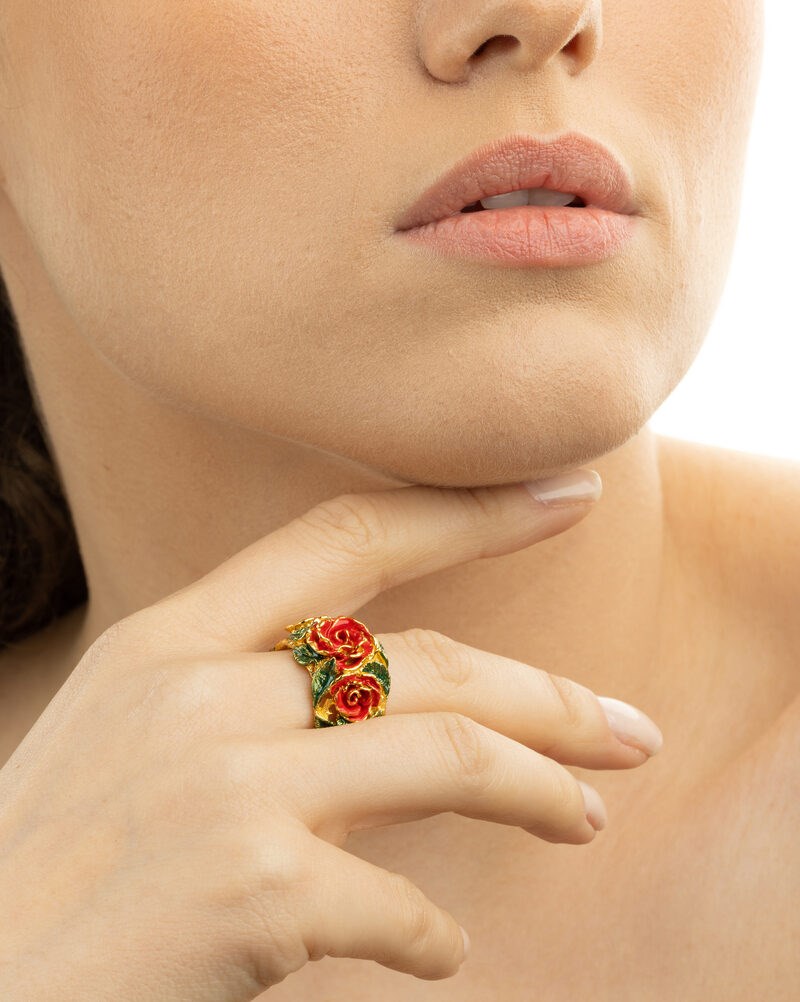 Anello donna isola bella, 20001161 ANELLO ROSA, collezione anelli, in argento 925 placcato oro con smalti, misura regolabile. Il più classico e il più amato dei fiori – la rosa – è celebrato da questo anello. La sua struttura sinuosa non è mai invadente e avvolge le dita assecondando la forma. Un gioiello che impreziosisce con la sua bellezza composta e un fascino senza tempo.