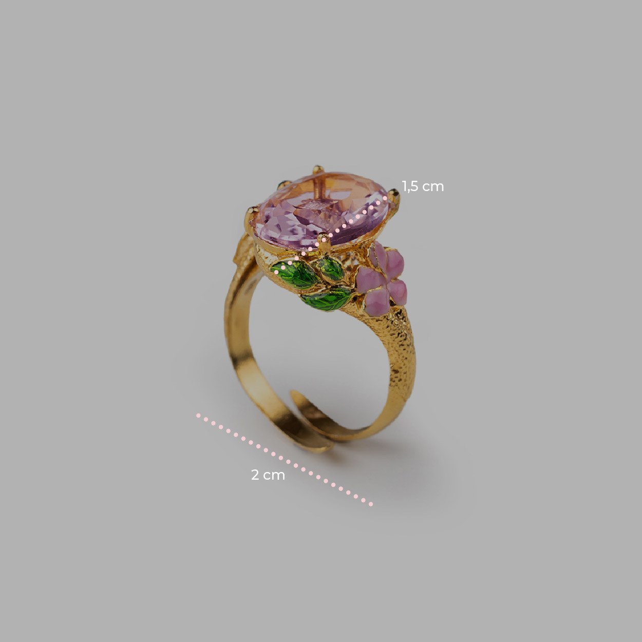 Anello donna isola bella, 60000025, collezione colibrì, placcato oro 18kt in lega IBG, smalti e cristallo rosa.