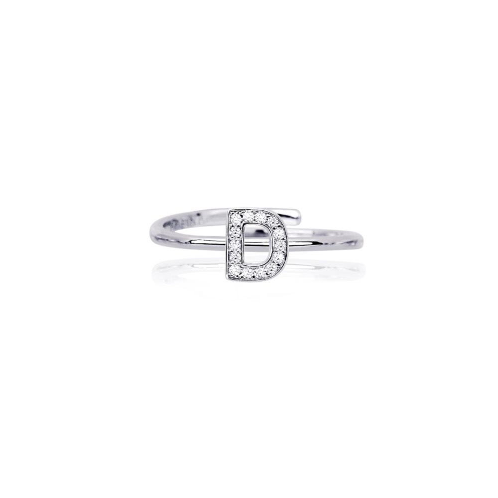 Anello donna mabina, 523110d, collezione argento donna, in argento 925 e zirconi, misura regolabile lettera d
