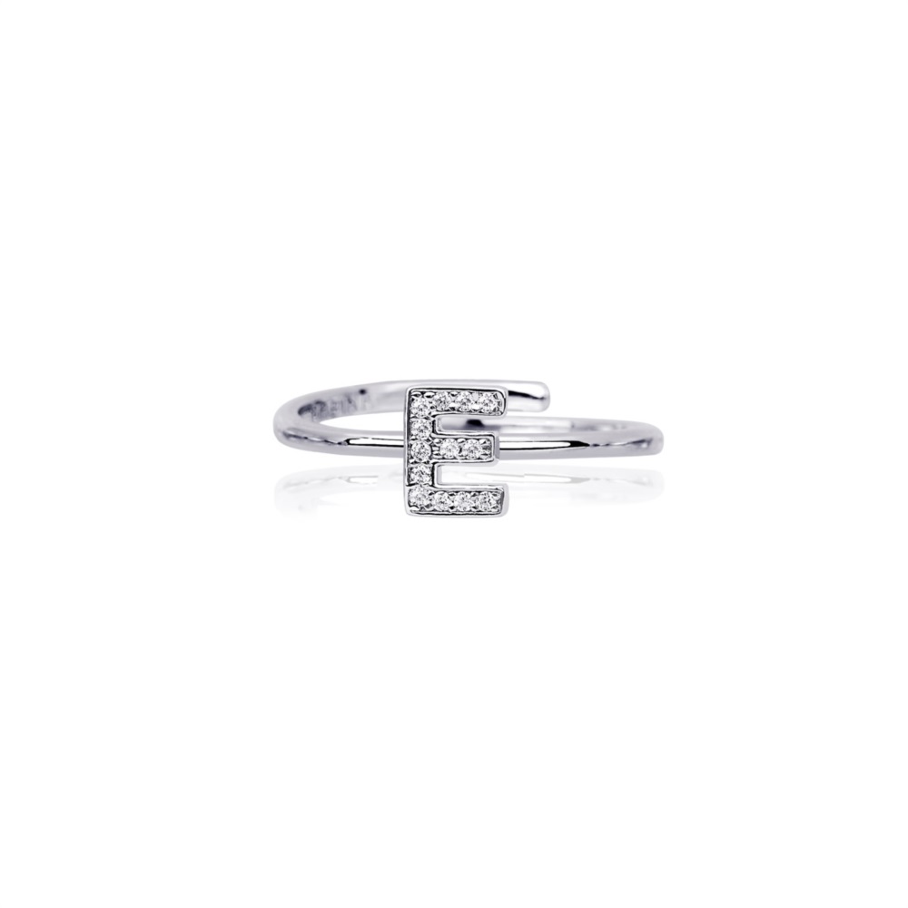 Anello donna mabina, 523110e, collezione argento donna, in argento 925 e zirconi, misura regolabile, lettera e