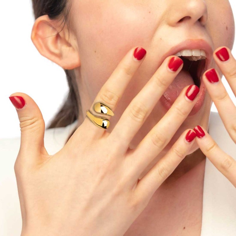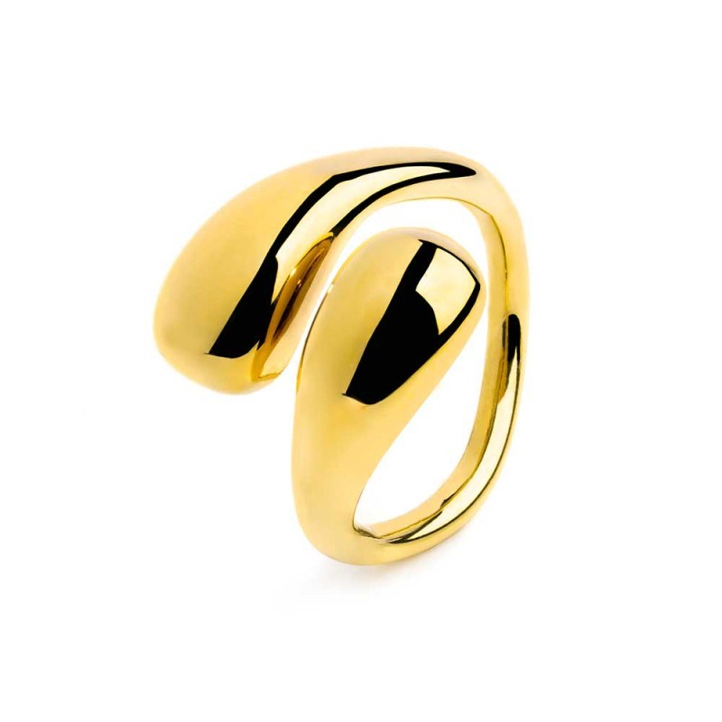 Anello donna marlù, 33AN0030G-18, collezione vision, in acciaio con finitura dorata a doppia goccia bombata. misura 18.