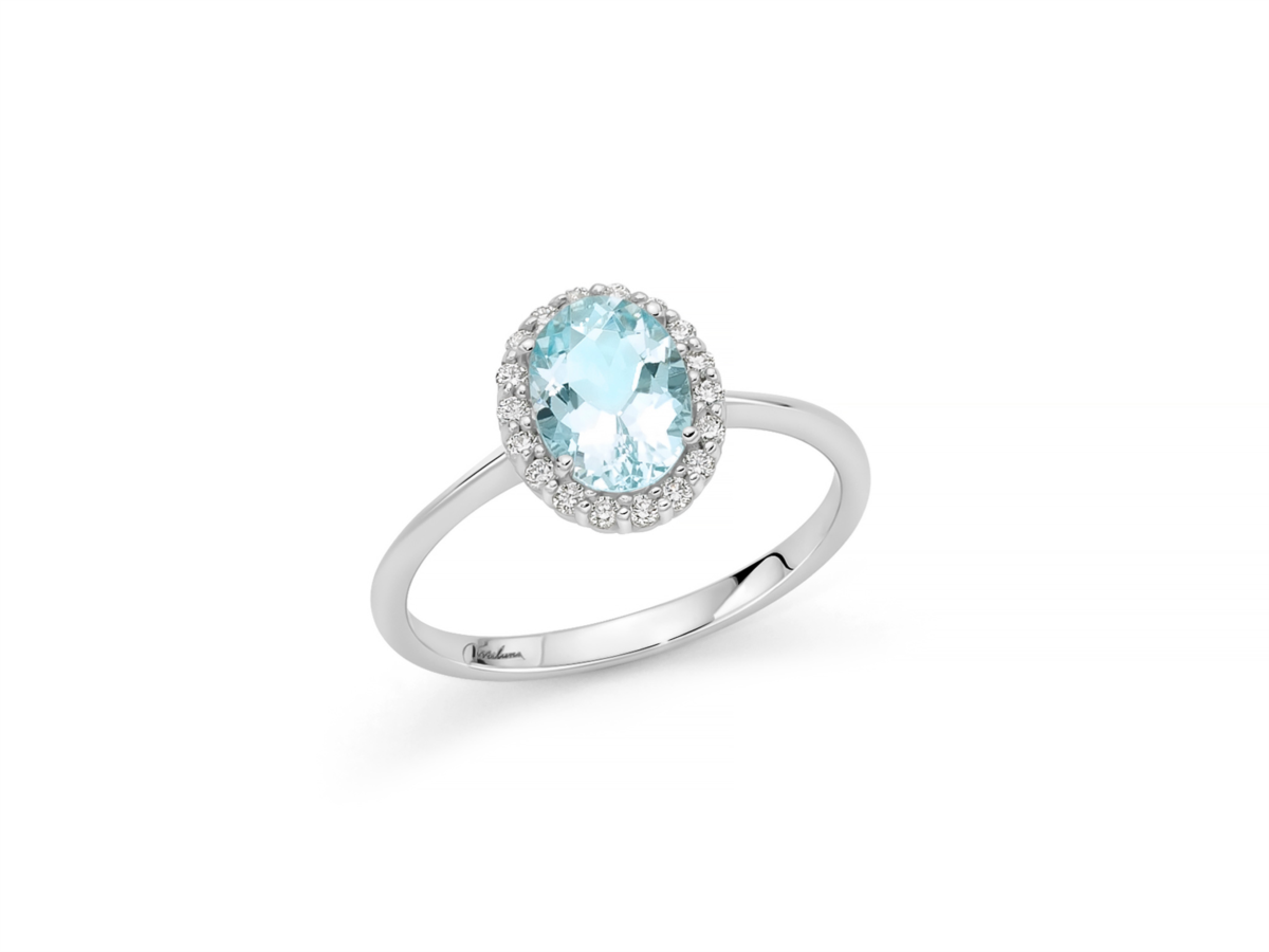 Anello donna miluna, LID3795, collezione acquamarina, Oro 750/1000 Nr 18 Diamanti naturali Pt.tot 16, 2 Col.G Pur.SI Taglio Brillante Rotondo Nr 1 Acquamarine naturali Ovale mm 8x6 Ct 1