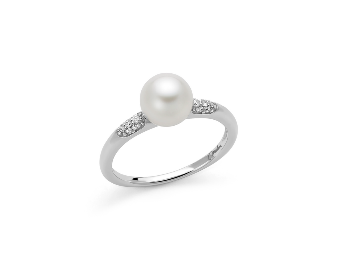 Anello donna miluna, PLI1673, collezione anelli con perle Oro 750/1000 Nr 14 Diamanti naturali Pt.tot 5, 6 Col.G Pur.SI Taglio Brillante Rotondo Nr 1 Perle vere Akoya Antiqua Spec.