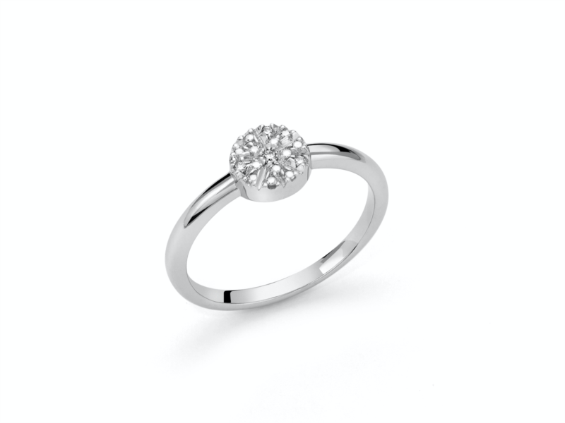 Anello donna miluna, Lid3557m12, collezione diamantissima. Nr 4 Diamanti naturali Pt.tot 2, 5 Col.G Pur.SI Taglio Brillante Rotondo Microfusione