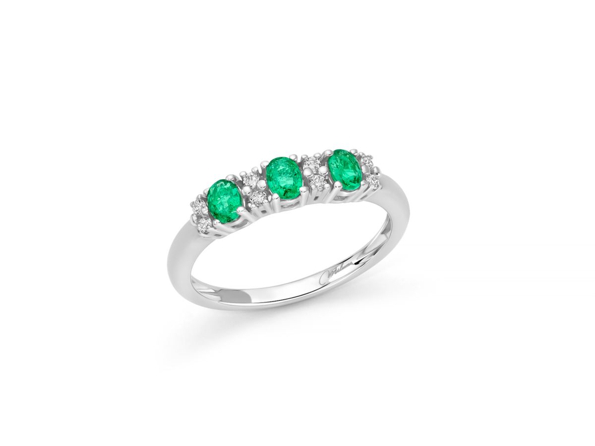 Anello donna miluna, LID3757, collezione acquamarina Oro 750/1000 Nr 8 Diamanti naturali Pt.tot 10 Col.G Pur.SI Taglio Brillante Rotondo Nr 3 Smeraldi naturali Ovale mm 4x3 Ct 0, 45