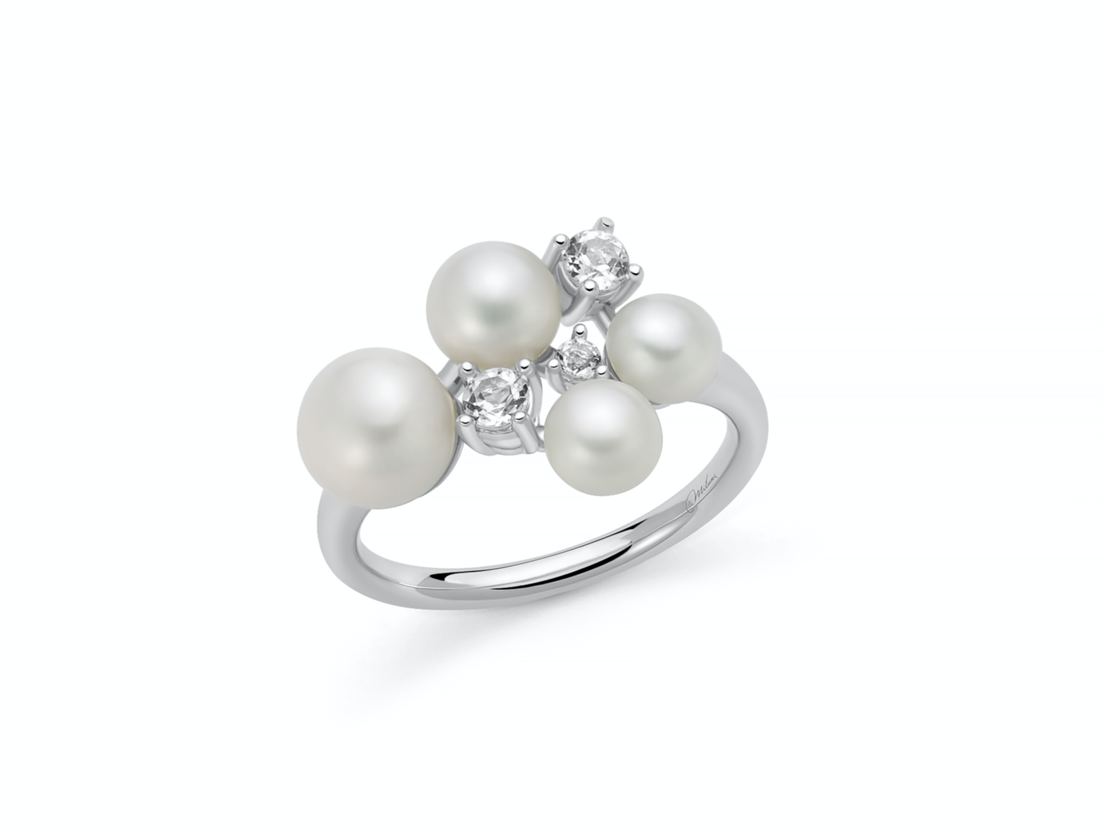 Anello donna miluna, PLI1740, collezione perle 925, in argento 925 con perle e topazi. misura 14. Nr 2 Perle vere Bottone Col.