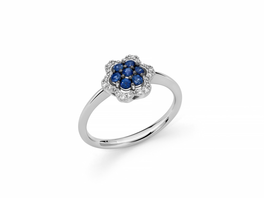 Anello donna miluna, LID3586, collezione premium diamonds, in oro bianco 18kt con diamanti e zaffiri