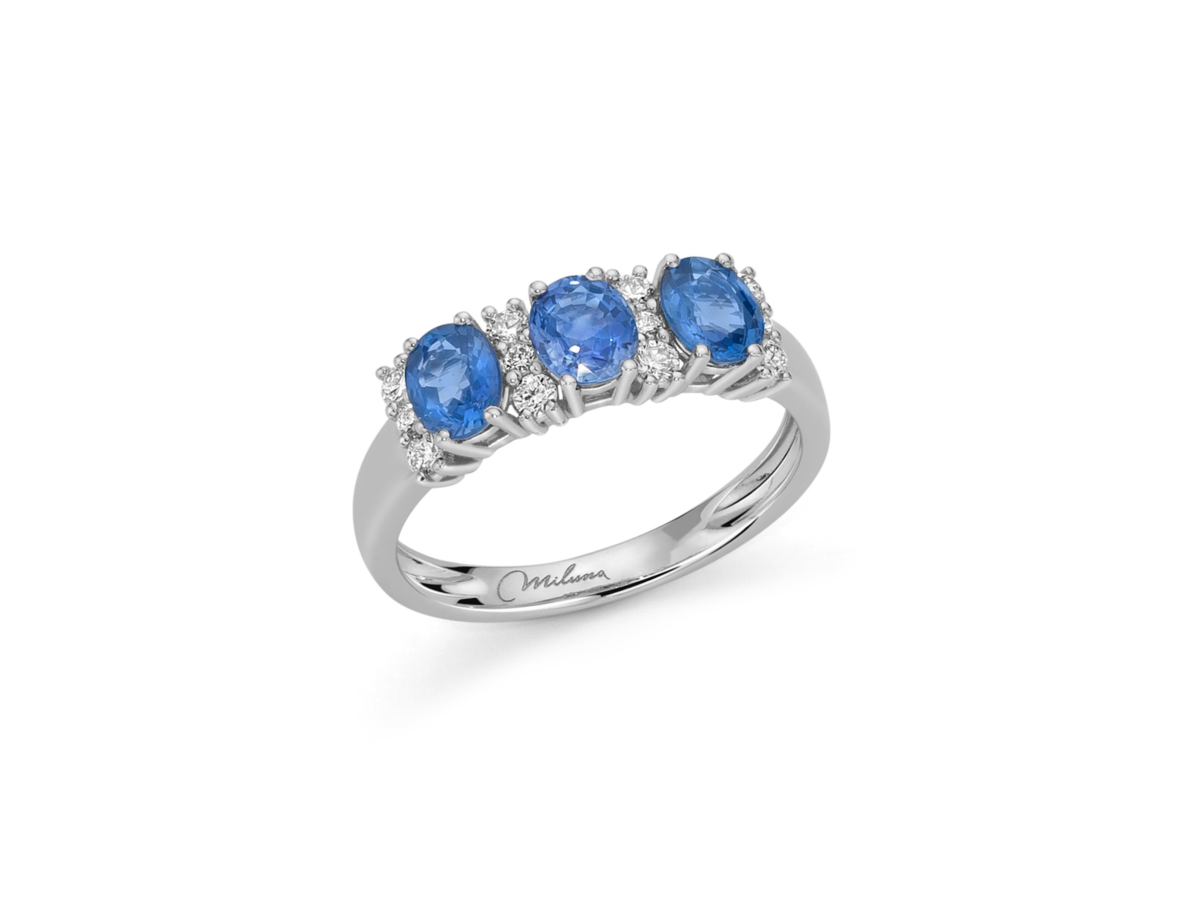 Anello donna miluna, LID3639, collezione premium gemme Oro 750/1000 Nr 12 Diamanti naturali Pt.tot 25 Col.G Pur.SI Taglio Brillante Rotondo Nr 3 Zaffiro nat.
