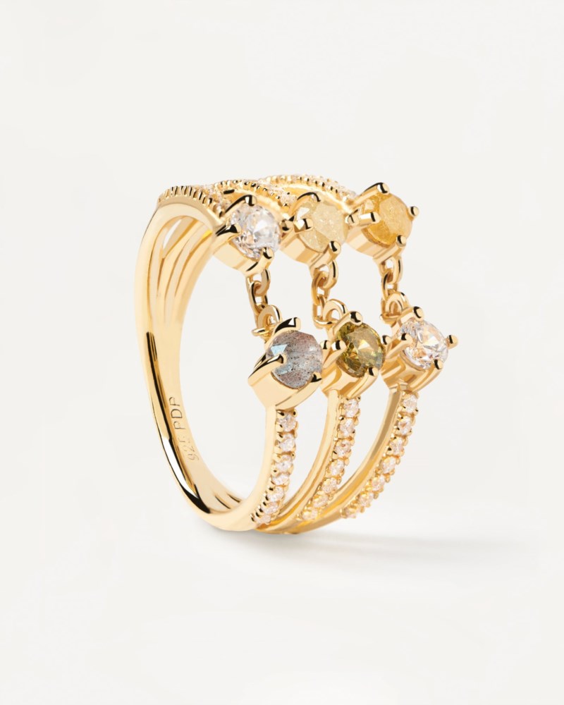 Anello donna pdpaola, AN01-655-12, collezione juno, in argento 925 placcato in oro 18kt con pietre e zirconi, misura 12