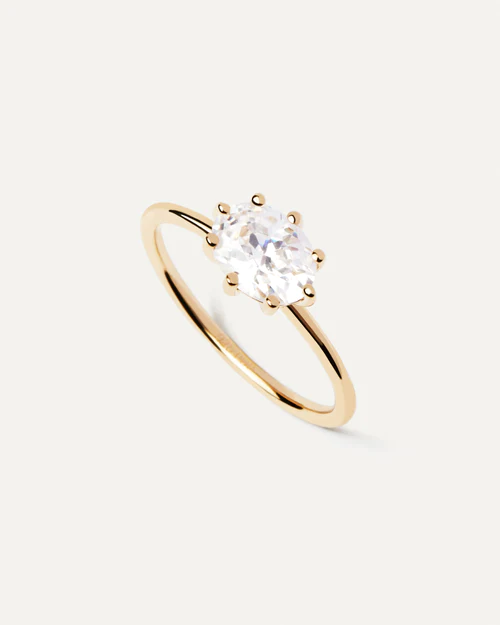 Anello donna pdpaola, AN01-A12-12, collezione kim, in argento 925 placcato in oro 18k e zirconi bianchi, misura 12